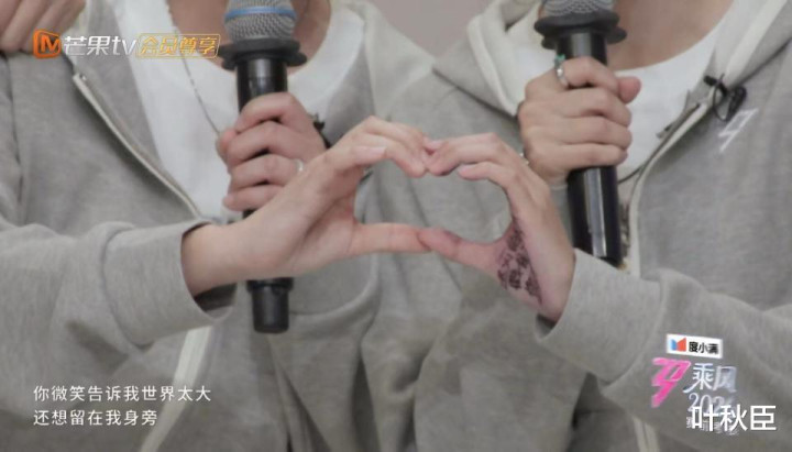 最终比心那个特写,看到手掌上写的歌词了,意境就有点跑,但可以明确看到叶一茜的那只手是干净的。